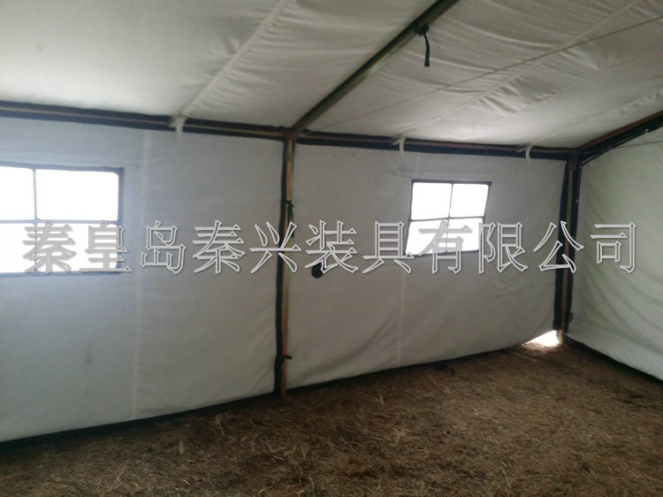 2.帳篷面布采用28×2/28×2草綠色滌綸帆布,其抗拉、撕裂、耐老化、防雨等性能優(yōu)良。保溫層采用3mm厚合纖針刺氈。里子布采用150D阻燃本白牛津布。